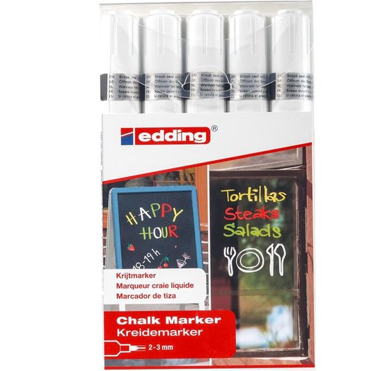 Marcadores Edding 4095 De Tiza P/cristal 2-3mm Blancos C/5