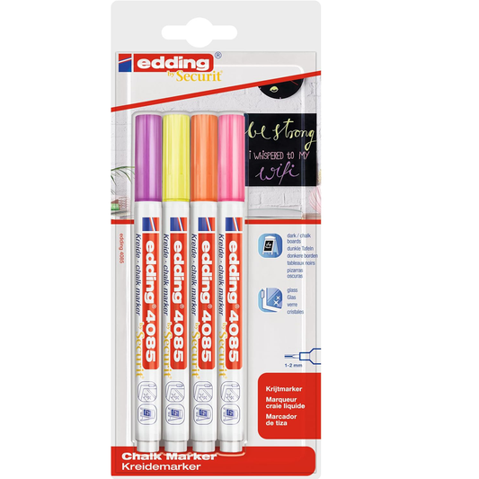 Marcadores Edding 4085 Tiza P/cristal 1-2mm Neon Bl C/4