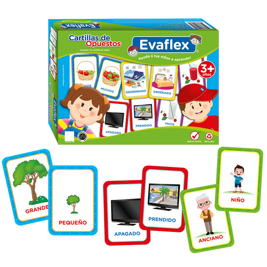 Juego Didactico Evaflex Cartillas De Opuestos 12x8.5 C/30