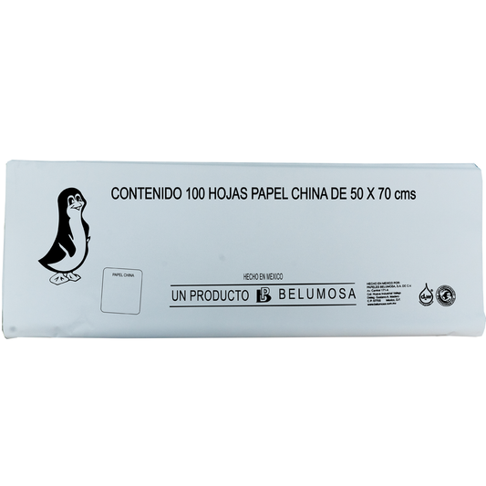Papel china Pingüino 75*50cm c/100 pliegos Colores A Elegir