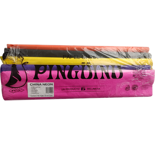 Papel China Pingüino Bolsa C/100 Pliegos Combinados Neon