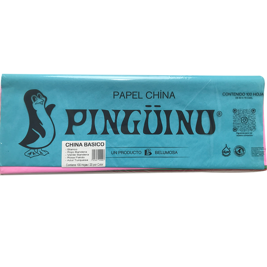 Papel China Pingüino Bolsa C/100 Pliegos Combinados Colores Basicos